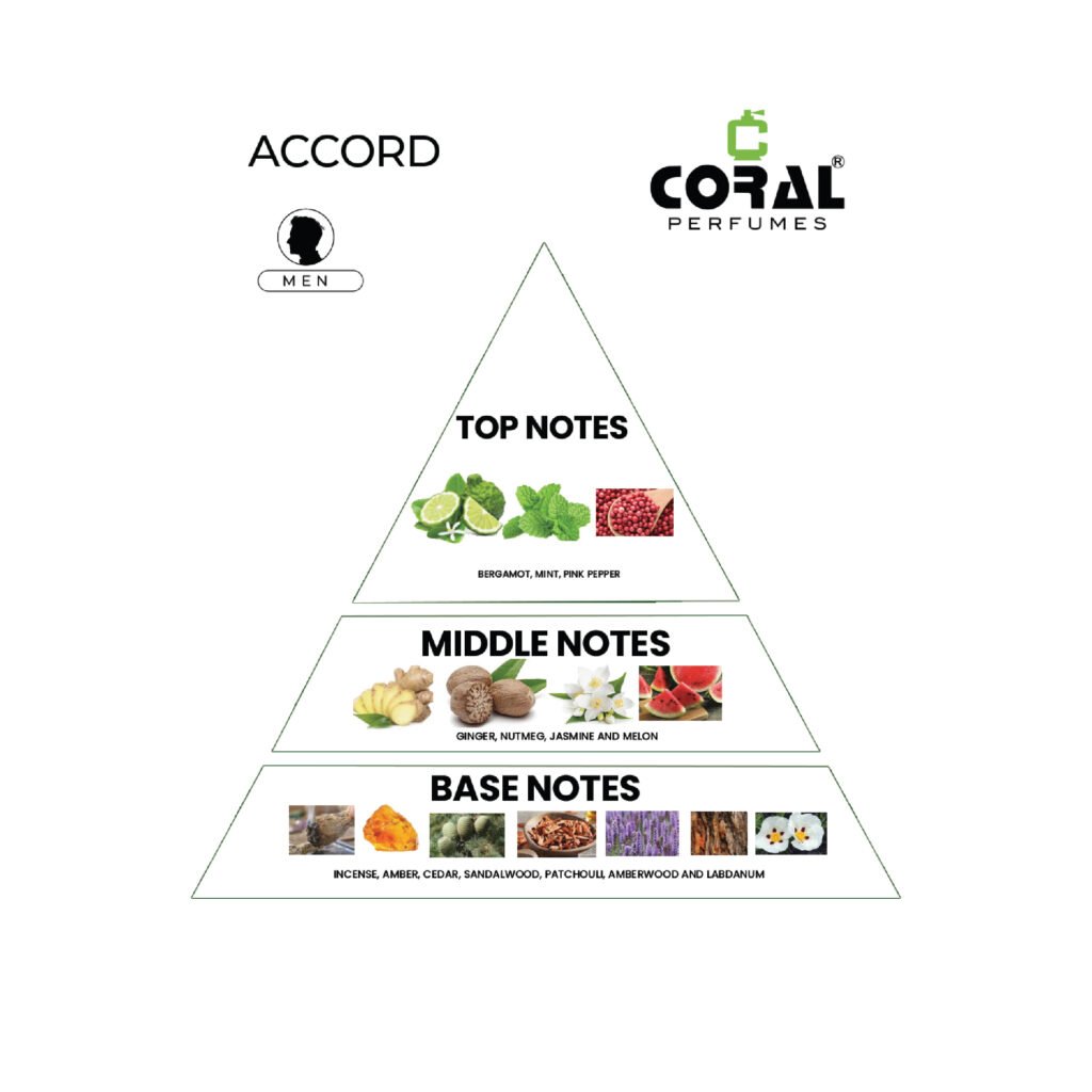 * Introducing Coral the refined sophistication of Coral Accord For Men Eau de Parfum, a fragrance that epitomizes modern elegance and charisma.