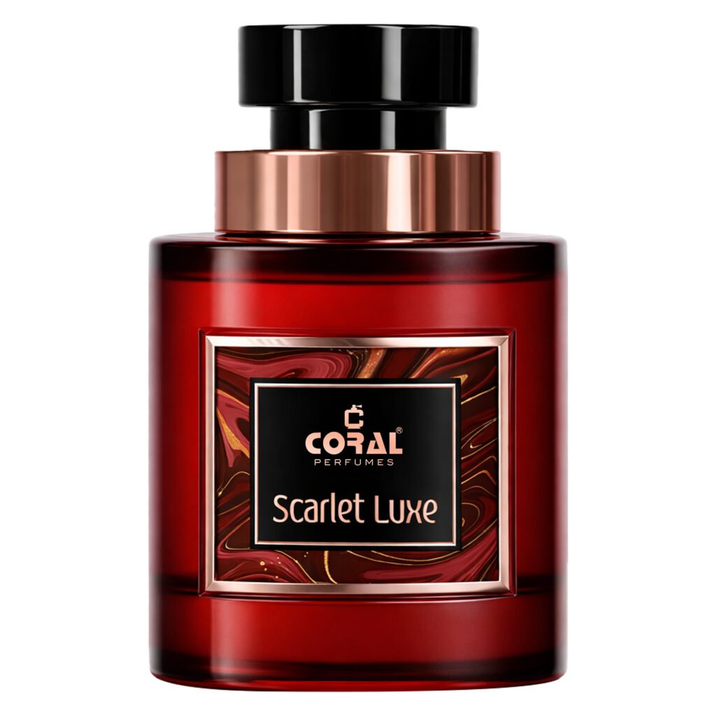 Discover CORAL SCARLET LUXE, a bold yet elegant floral fragrance, designed for both men and women. Juicy Peach and Black Currant intertwine with refreshing Mint, while Rose and Jasmine add a luxurious floral heart. The warmth of Caramel and Leather creates an intriguing, sensual base, perfectly balanced by the depth of Ambergris. A fragrance that’s both fresh and indulgent, ideal for those who seek sophistication with a touch of sweetness.