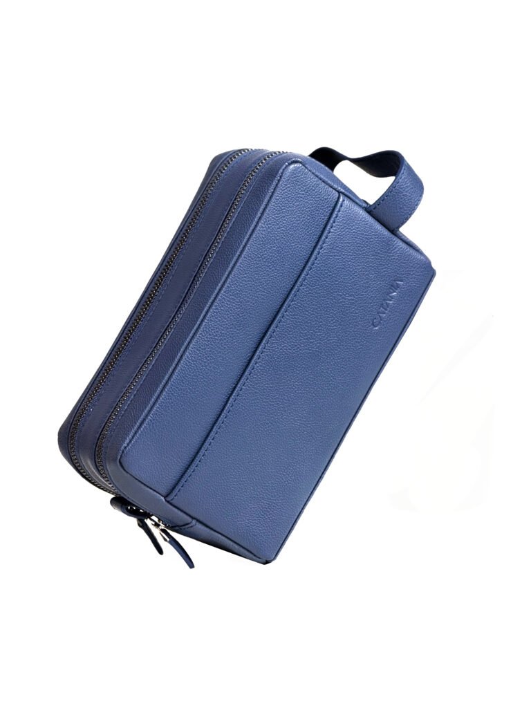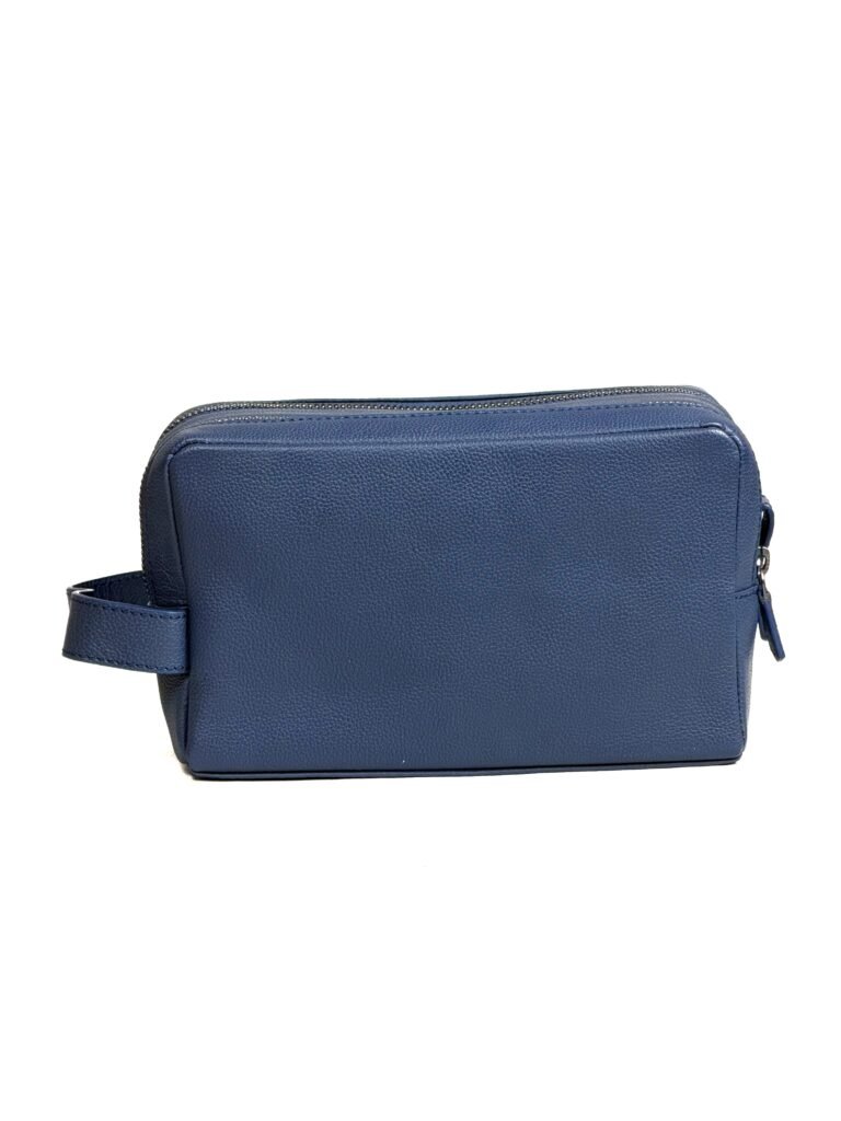 This double zipper leather toiletry bag is designed for efficient and compact travel organization. Crafted from 100% soft milled leather, it delivers a premium finish with durable performance for everyday and travel use. The waterproof inner lining protects your essentials from spills and moisture, ensuring safe storage of toiletries and grooming items. The dual-compartment design allows organized separation of essentials, while the exterior front pocket provides quick access to frequently used items. An internal zip pocket adds secure storage for smaller belongings. Finished with high-quality YKK zippers, this travel organizer ensures smooth operation and long-lasting reliability in a compact, easy-to-carry form.