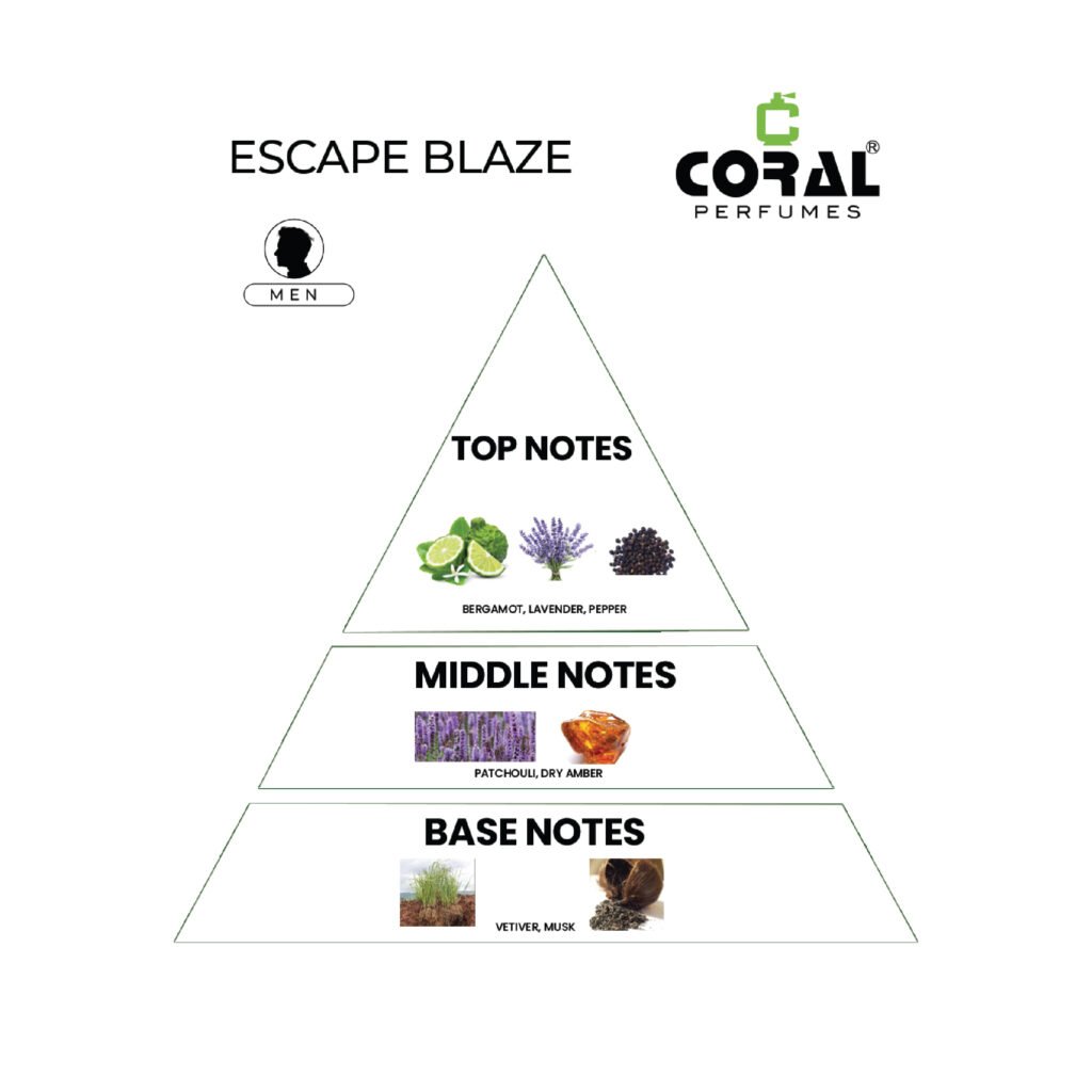 * Escape Blaze For Men Eau de Parfum is meticulously crafted to evoke a sense of freedom and adventure, encapsulating the spirit of exploration and independence.