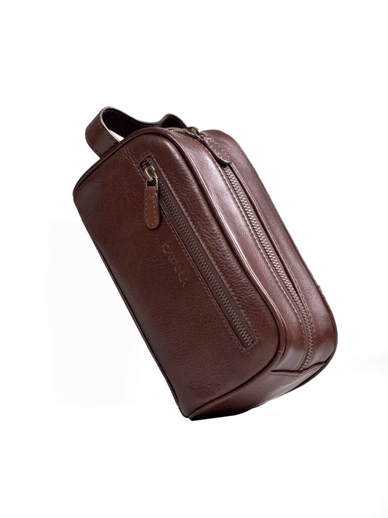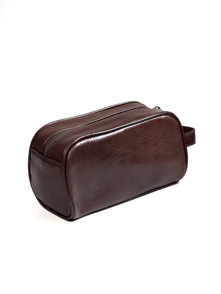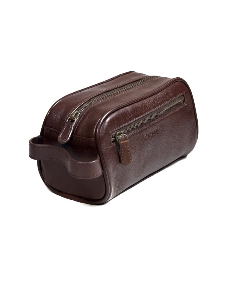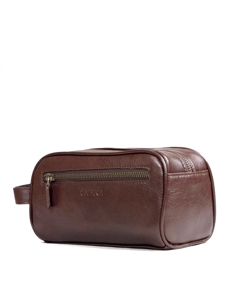 This leather toiletry kit is designed for compact and organized travel storage. Crafted from 100% soft milled leather, it offers a premium finish with durable performance for everyday and travel use. The waterproof inner lining protects your essentials from spills and moisture, ensuring safe storage of toiletries and grooming items. The design features a spacious main compartment, an exterior front pocket for quick access, and internal zip and slip pockets for organized storage of smaller items. Equipped with high-quality YKK zippers, it delivers smooth functionality and reliable performance in a compact, travel-friendly size.