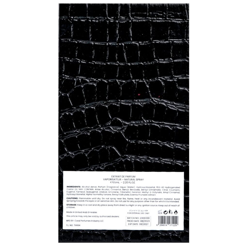 Base Notes | Vanilla, Musks, Amber, Tonka beans, Leather |