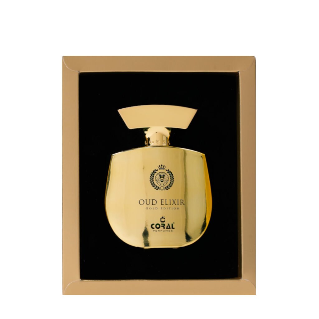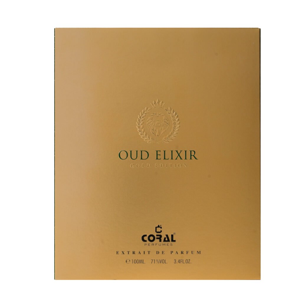 * Introducing Coral the mystery and allure of Oud Elixir Gold edition For Unisex Extrait de Parfum, a fragrance that transcends gender with its rich and intoxicating blend.
