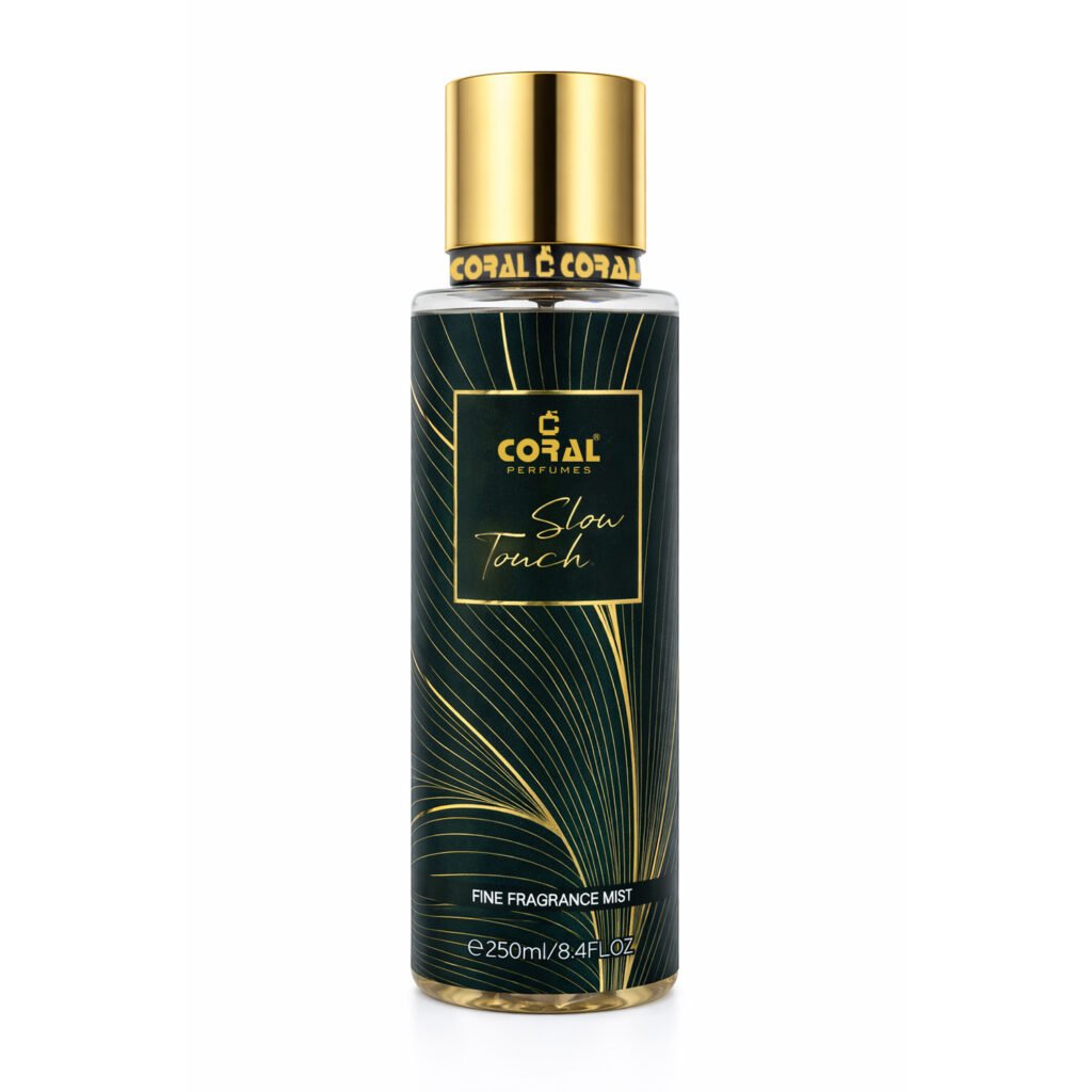 SLOW TOUCH Fragrance Mist 250ML by Coral Perfumes is a refined and balanced scent that harmonizes bright citrus with soft florals and warm, sensual base notes. The fragrance opens with a fresh and zesty burst of lemon and orange, providing a crisp, invigorating start. The heart reveals a sophisticated blend of rose, violet, jasmine, and blackcurrant, combining the classic elegance of floral notes with the rich, fruity depth of blackcurrant. In the base, musk and sandalwood add a creamy, warm finish that grounds the fragrance and enhances its lasting power. The overall composition is a smooth and elegant blend of citrus, floral, and woody notes, creating a versatile and enjoyable scent.